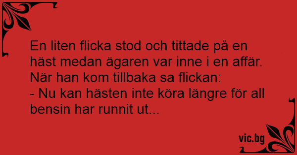 - Nu kan hästen inte köra längre för all bensin har runnit ut...