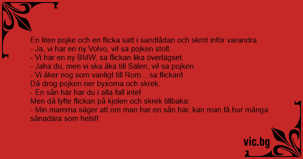 En liten pojke och en flicka satt i sandlådan och skröt inför varandra.