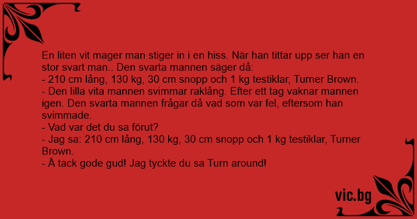 - Jag sa: 210 cm lång, 130 kg, 30 cm snopp och 1 kg testiklar, Turner Brown.