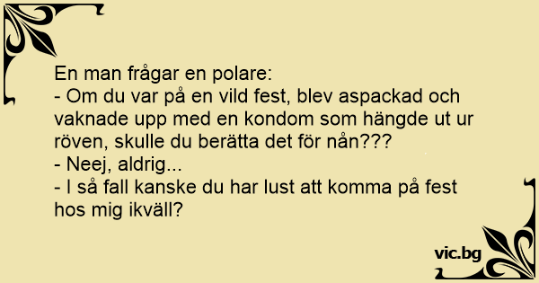 - Om du var på en vild fest, blev aspackad och vaknade upp med en kondom som hängde ut ur röven, skulle du berätta det för nån???