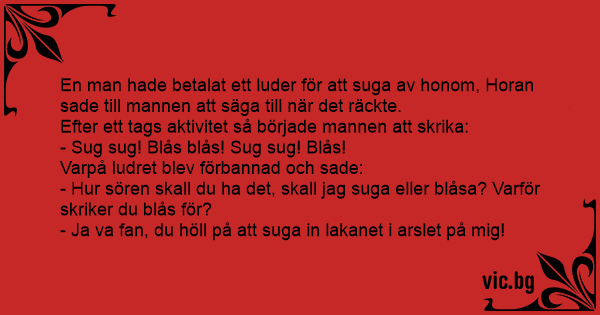 - Hur sören skall du ha det, skall jag suga eller blåsa? Varför skriker du blås för?