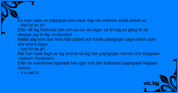 En man hade en papegoja som varje dag när mannen slutat jobbet sa:
