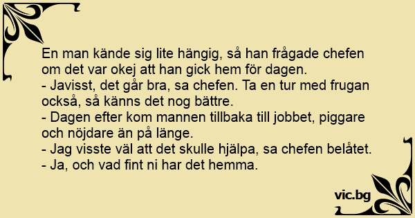 - Dagen efter kom mannen tillbaka till jobbet, piggare och nöjdare än på länge.