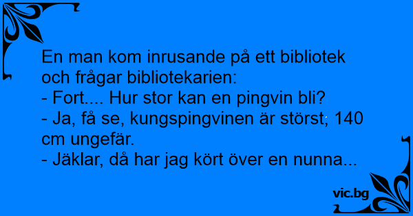 En man kom inrusande på ett bibliotek och frågar bibliotekarien:
