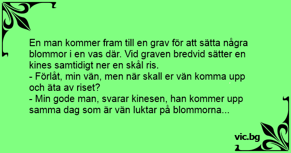 - Min gode man, svarar kinesen, han kommer upp samma dag som är vän luktar på blommorna...