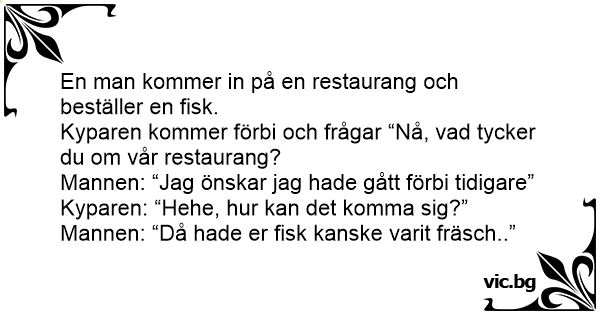 Kyparen kommer förbi och frågar “Nå, vad tycker du om vår restaurang?