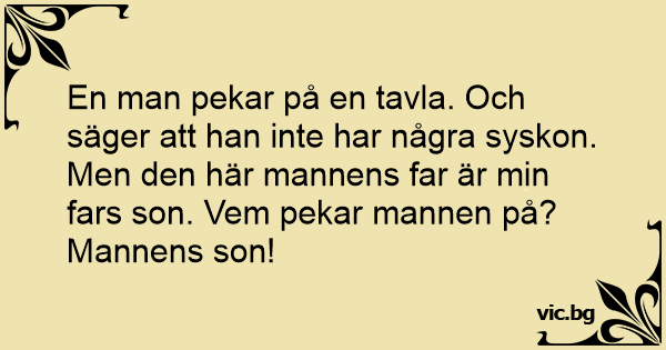 En man pekar på en tavla. Och säger att han inte har några syskon. Men den här mannens far är min fars son. Vem pekar mannen på?