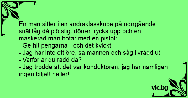 - Jag trodde att det var konduktören, jag har nämligen ingen biljett heller!
