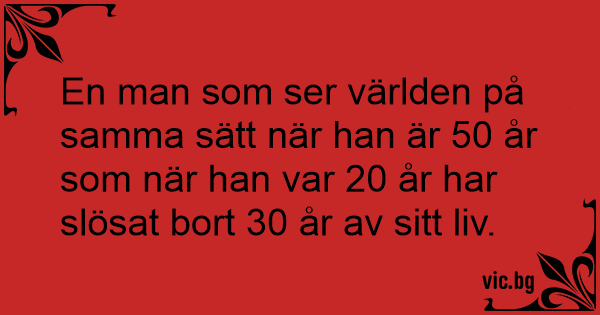 En man som ser världen på samma sätt när han är 50 år som när han var 20 år har slösat bort 30 år av sitt liv.