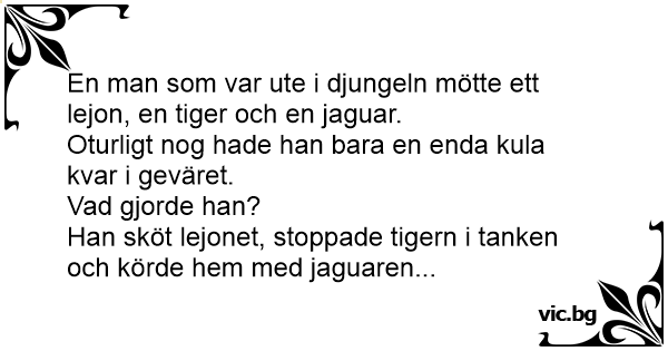 Han sköt lejonet, stoppade tigern i tanken och körde hem med jaguaren...