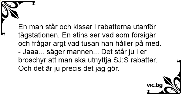 - Jaaa... säger mannen... Det står ju i er broschyr att man ska utnyttja SJ:S rabatter. Och det är ju precis det jag gör.