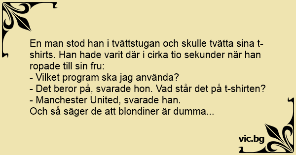 En man stod han i tvättstugan och skulle tvätta sina t-shirts. Han hade varit där i cirka tio sekunder när han ropade till sin fru: