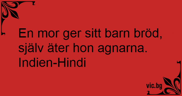En mor ger sitt barn bröd, själv äter hon agnarna.