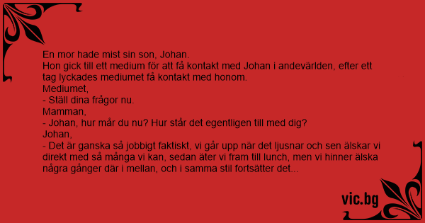 Hon gick till ett medium för att få kontakt med Johan i andevärlden, efter ett tag lyckades mediumet få kontakt med honom.