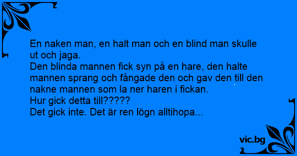 En naken man, en halt man och en blind man skulle ut och jaga.