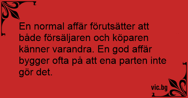 En normal affär förutsätter att både försäljaren och köparen känner varandra. En god affär bygger ofta på att ena parten inte gör det.