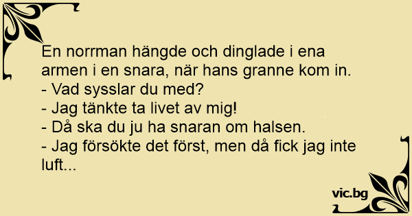 En norrman hängde och dinglade i ena armen i en snara, när hans granne kom in.