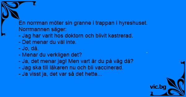 En norrman möter sin granne i trappan i hyreshuset. Norrmannen säger: