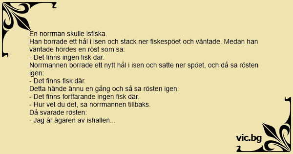 Han borrade ett hål i isen och stack ner fiskespöet och väntade. Medan han väntade hördes en röst som sa: