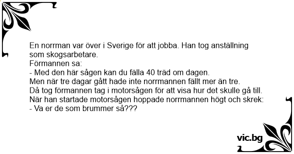 När han startade motorsågen hoppade norrmannen högt och skrek: