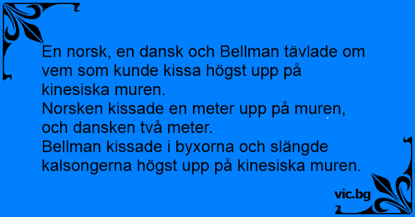 En norsk, en dansk och Bellman tävlade om vem som kunde kissa högst upp på kinesiska muren.