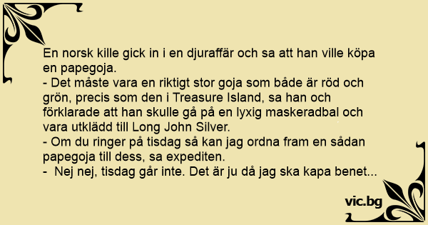 En norsk kille gick in i en djuraffär och sa att han ville köpa en papegoja.