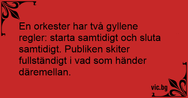 En orkester har två gyllene regler: starta samtidigt och sluta samtidigt. Publiken skiter fullständigt i vad som händer däremellan.