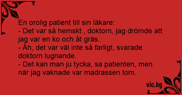 - Det var så hemskt , doktorn, jag drömde att jag var en ko och åt gräs.