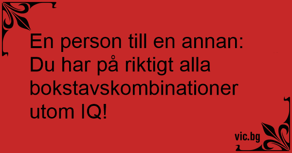 En person till en annan: Du har på riktigt alla bokstavskombinationer utom IQ!