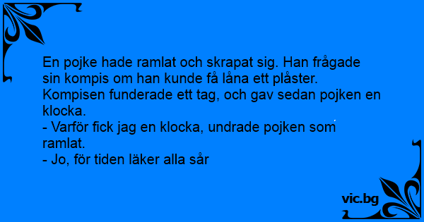 - Varför fiск jag en klocka, undrade pojken som ramlat.