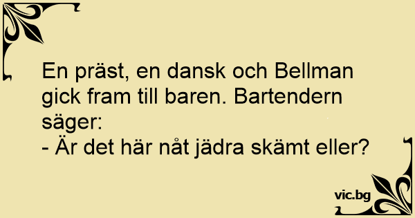 En präst, en dansk och Bellman gick fram till baren. Bartendern säger: