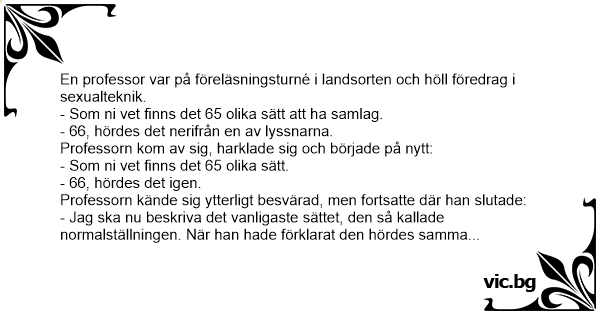 - Som ni vet finns det 65 olika sätt att ha samlag.