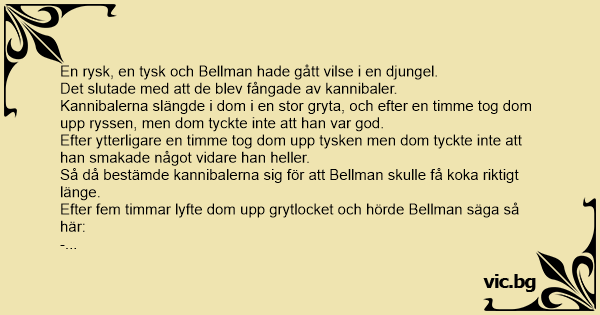 En rysk, en tysk och Bellman hade gått vilse i en djungel.