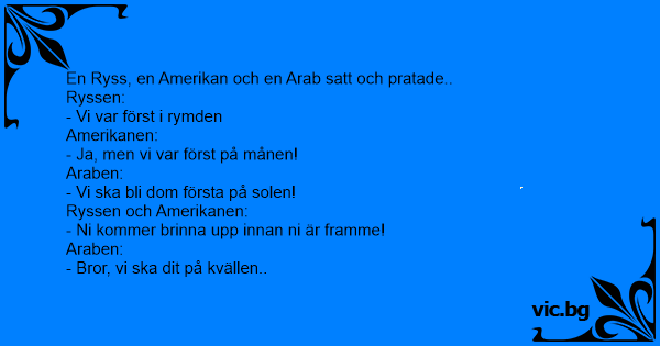 Ruotsalaiset halusivat hekin valloittaa avaruuden. Koska amerikkalaiset olivat jo käyneet kuussa, he päättivät laskeutua Aurinkoon. ”Mutta eikö siellä ole liian kuuma?” kysyi eräs pelokkaana. ”Ei...