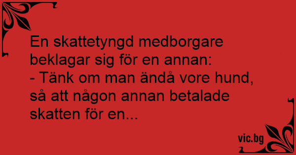 - Tänk om man ändå vore hund, så att någon annan betalade skatten för en...