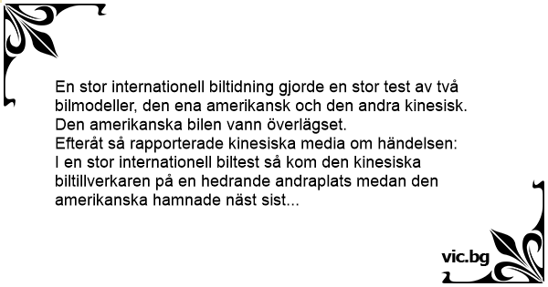 En stor internationell biltidning gjorde en stor test av två bilmodeller, den ena amerikansk och den andra kinesisk.