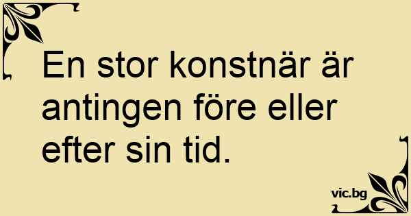 En stor konstnär är antingen före eller efter sin tid.