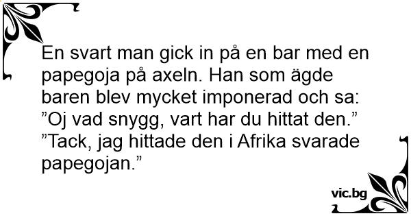 ”Tack, jag hittade den i Afrika svarade papegojan.”