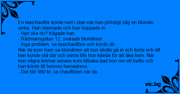 En taxichaufför körde runt i stan när han plötsligt såg en blondin vinka. Han stannade och hon hoppade in.
