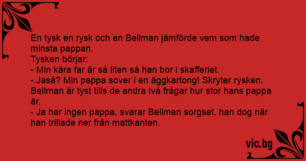 En tysk en rysk och en Bellman jämförde vem som hade minsta pappan.