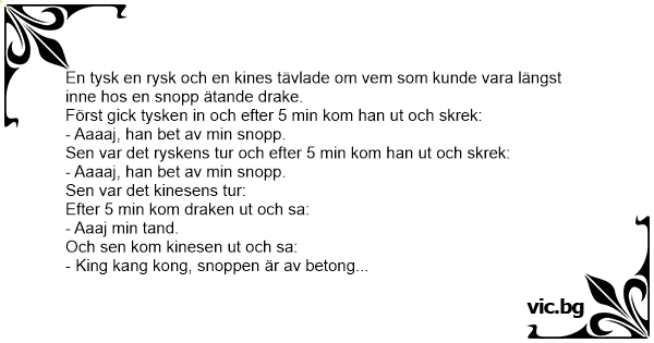 En tysk en rysk och en kines tävlade om vem som kunde vara längst inne hos en snopp ätande drake.