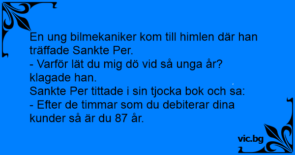 En ung bilmekaniker kom till himlen där han träffade Sankte Per.
