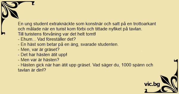 - Hästen gick när han ätit upp gräset. Vad säger du, 1000 spänn och tavlan är din!?