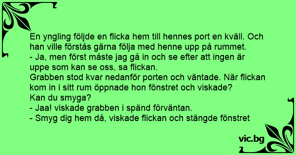 En yngling följde en flicka hem till hennes port en kväll. Och han ville förstås gärna följa med henne upp på rummet.