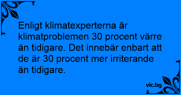 Enligt klimatexperterna är klimatproblemen 30 procent värre än tidigare. Det innebär enbart att de är 30 procent mer irriterande än tidigare.