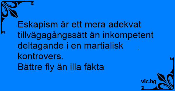 Eskapism är ett mera adekvat tillvägagångssätt än inkompetent deltagande i en martialisk kontrovers.