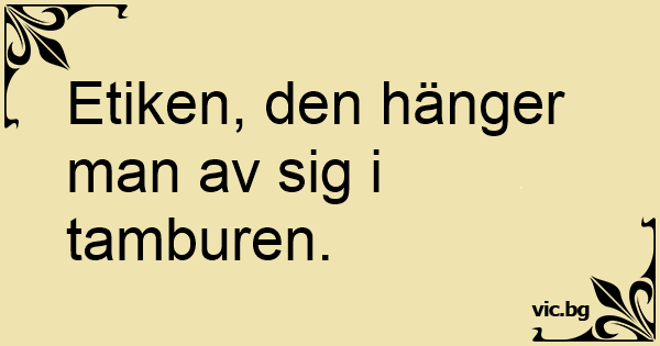 Etiken, den hänger man av sig i tamburen.
