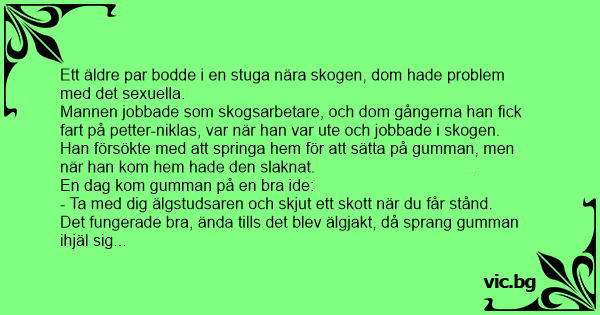 Ett äldre par bodde i en stuga nära skogen, dom hade problem med det sexuella.
