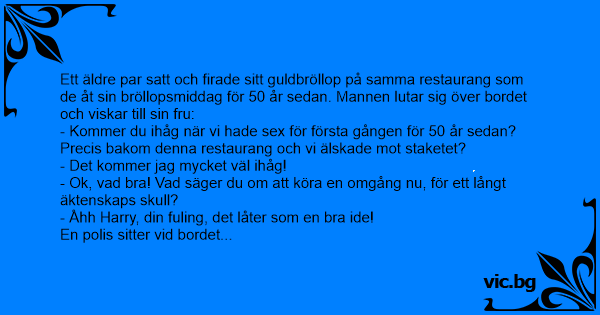 - Kommer du ihåg när vi hade sеx för första gången för 50 år sedan? Precis bakom denna restaurang och vi älskade mot staketet?