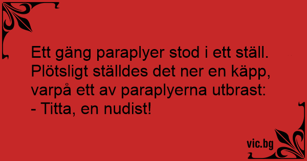 Ett gäng paraplyer stod i ett ställ. Plötsligt ställdes det ner en käpp, varpå ett av paraplyerna utbrast: